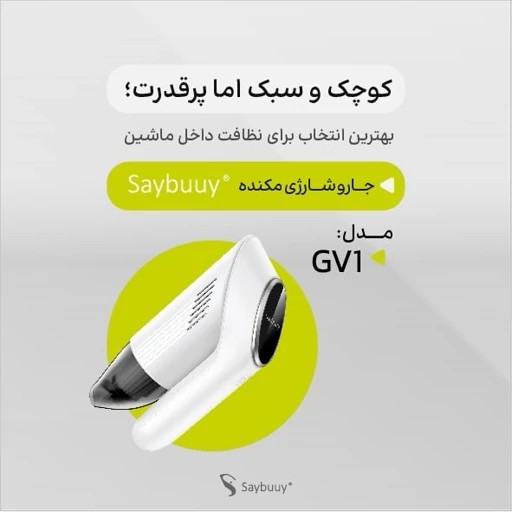 جارو شارژی خودرو سی بای SAYBUUY GV1 با طراحی ارگونومیک و وزن سبک، گزینهای ایدهآل برای تمیز کردن داخل خودرو، منزل و حتی محیط کار است.