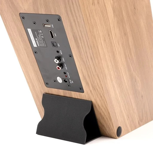 لوکس ، اصیل و خوش صدا سه تا کلمه ای هستش که میشه در وصف این مدل گفت ؛ اسپیکرHISKA L75ms از مدل های لوکس برند هیسکا می باشد. این اسپیکر بدنه چوبی و طراحی کلاسیکی دارد. این اسپیکر در عین اینکه ظاهری کلاسیک داره باطنی مدرن و به روز داره تا خیالتون از کانکشن ها راحت باشه ، محصول از آپشن های روز بیسیم پشتیبانی میکنه و به راحتی میتونید باسیم یا بیسیم بهش وصل شید. این محصول 5.2 کیلوئه که بخش عمده وزن به خاطر متریال چوبیشه ؛ توان خروجی صدای این اسپیکر 80 واته و البته که برقیه .این محصول برای عاشقان موزیک طراحی و تولید شده که با توجه به ،به روز بودنش میتونید تمام مسئولیت های صوتی خونه رو بهش محول کنید و دوستانتون رو دعوت به شنیدن صدای این اعجوبه کنید . در این اسپیکر دو ووفر 4 اینچی و دو تیوتر 0.75 اینچی چیده شده تا به بهترین شکل ممکن از موزیکتون لذت ببرید . بر خلاف ظاهر کلاسیکش براتون حسابی تدارک دیده و وقتی پشت محصول رو نگاه میکنید ، شگفت زده میشید که پورت HDMI arc دیگه کامل کاملش میکنه و اونجا پورت های خاصی مثل OPT و جک 3.5 هم هست تا دیگه به هرچی خواستید وصلش کنید و البته بلوتوث که خیلی راحت میتونید با گوشی موبایل ، بلوتوث لپ تاپ یا تلوزیونتون بهش وصل شید . بهتره تو این قسمت از متریال چوبیش بگیم که از چوب MDF بسیار با کیفیت استفاده شده و کاملا حس خوب منتقل میکنه و مخصوصا برای طرفدارای چوب و محصولات چوبی . این طراحی فقط ظاهری نبوده و این باکس میتونه کاملا مثل سازها صدا رو براتون آکوستیک پخش کنه و روی قسمت جلویی هم یه محافظ براتون در نظر گرفته شده تا اگر خواستید کلاسیک تر به نظر برسه و مثل اسپیکر های قدیمی بشه کافیه که اونو در بیارید تا درایو ها رو از نزدیک ببینید.