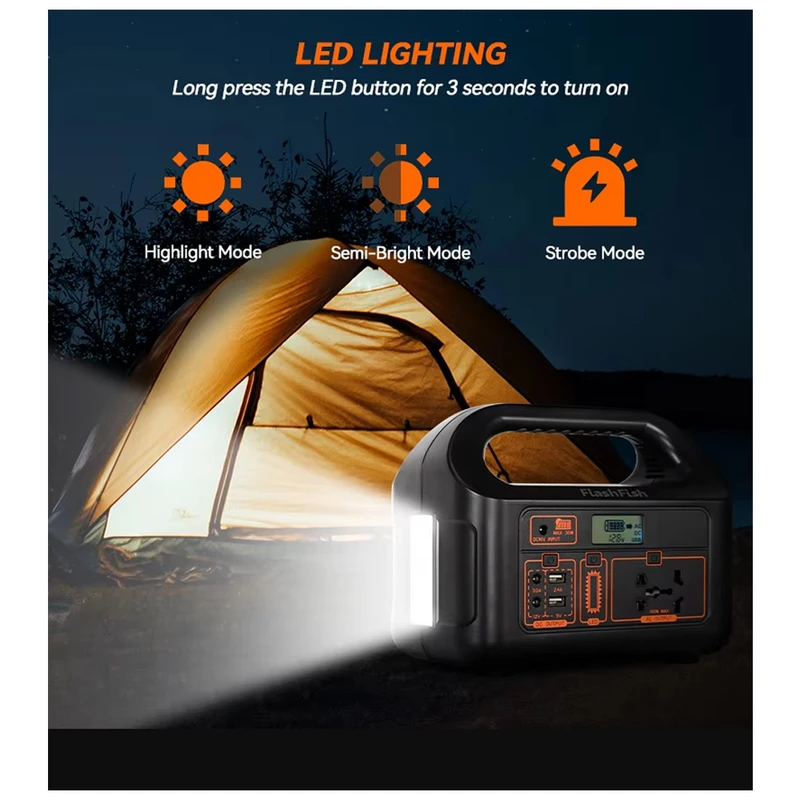 یکی از ویژگیهای برجستهی EG-008pb، قابلیت شارژ خورشیدی است. کاربر میتواند با اتصال پنل خورشیدی سازگار (بهصورت جداگانه) پاور استیشن را مستقیماً از نور خورشید شارژ کند. این قابلیت برای مسافران، کوهنوردان و افرادی که در مناطق دورافتاده بدون دسترسی به برق زندگی یا کار میکنند، اهمیت فراوان دارد. همچنین وجود چراغقوهی قدرتمند LED در بدنهی دستگاه، آن را به گزینهای ایدهآل برای کمپینگ شبانه تبدیل کرده است. این چراغقوه میتواند در مواقع اضطراری مانند قطعی برق یا جستوجو در تاریکی نیز مورد استفاده قرار گیرد.