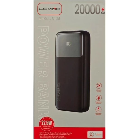 پاوربانک 22.5 وات لوینو مدل N-18 ظرفیت 20000 میلی آمپر ساعت